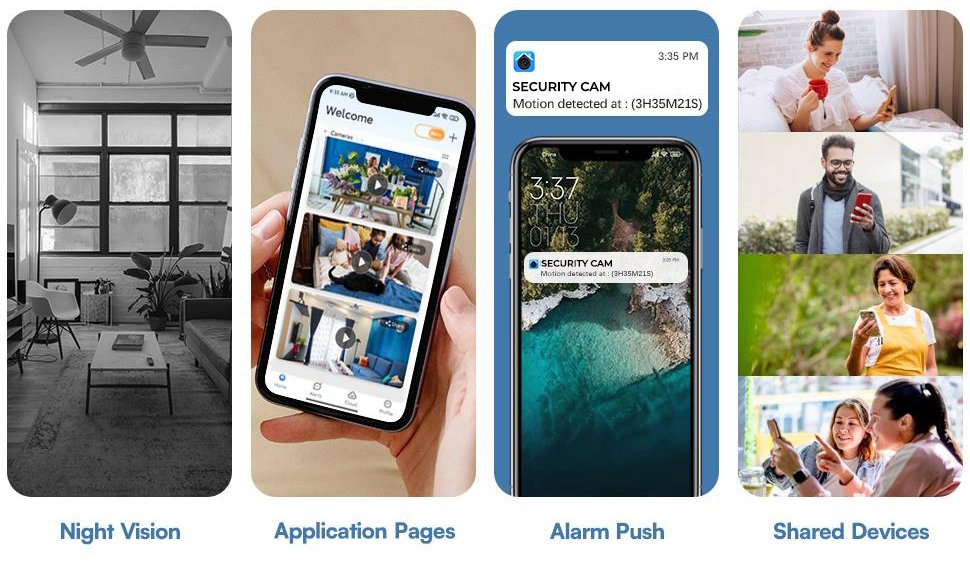 Built-in enhanced microphone and speaker and invisiable infrared LEDs. You can see, talk and listen to your love or scare off the unexpected person in real time even if you are not at home.